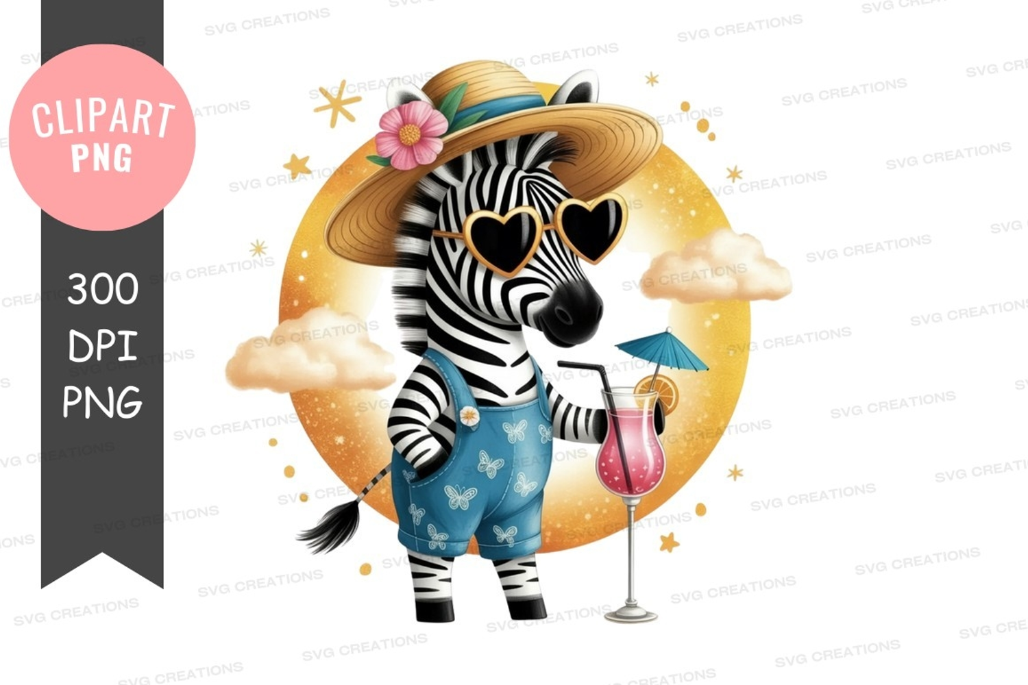 Fun Whimsical Summer Drink Overalls Zebra Cocktail Butterflies Straw Hat Heart Sunglasses