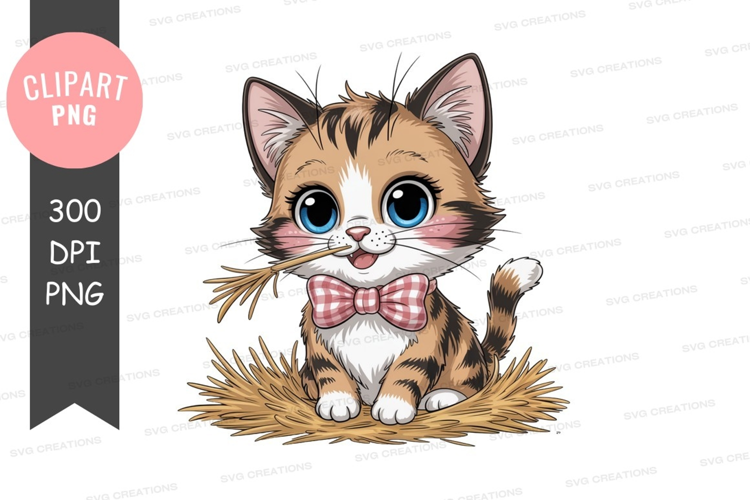Cartoon Cute Garden Butterfly Cat Grass Kitten Nest Bowtie Blue Butterfly