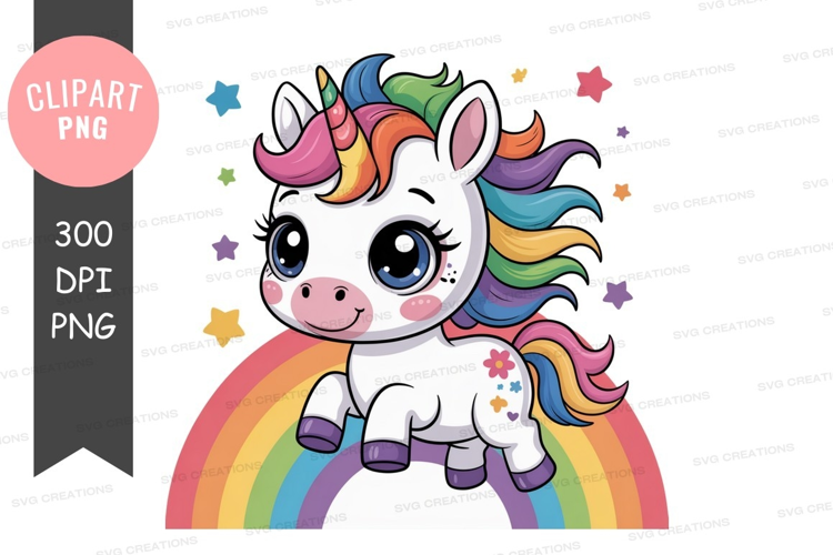 Illustration Cartoon Fantasy Whimsical Clipart Unicorn Pastel Rainbow Stars Blue Butterfly