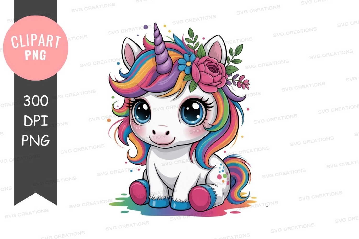 Illustration Cartoon Fantasy Garden Butterfly Unicorn Rainbow Baby Unicorn Blue Butterfly Flower Crown