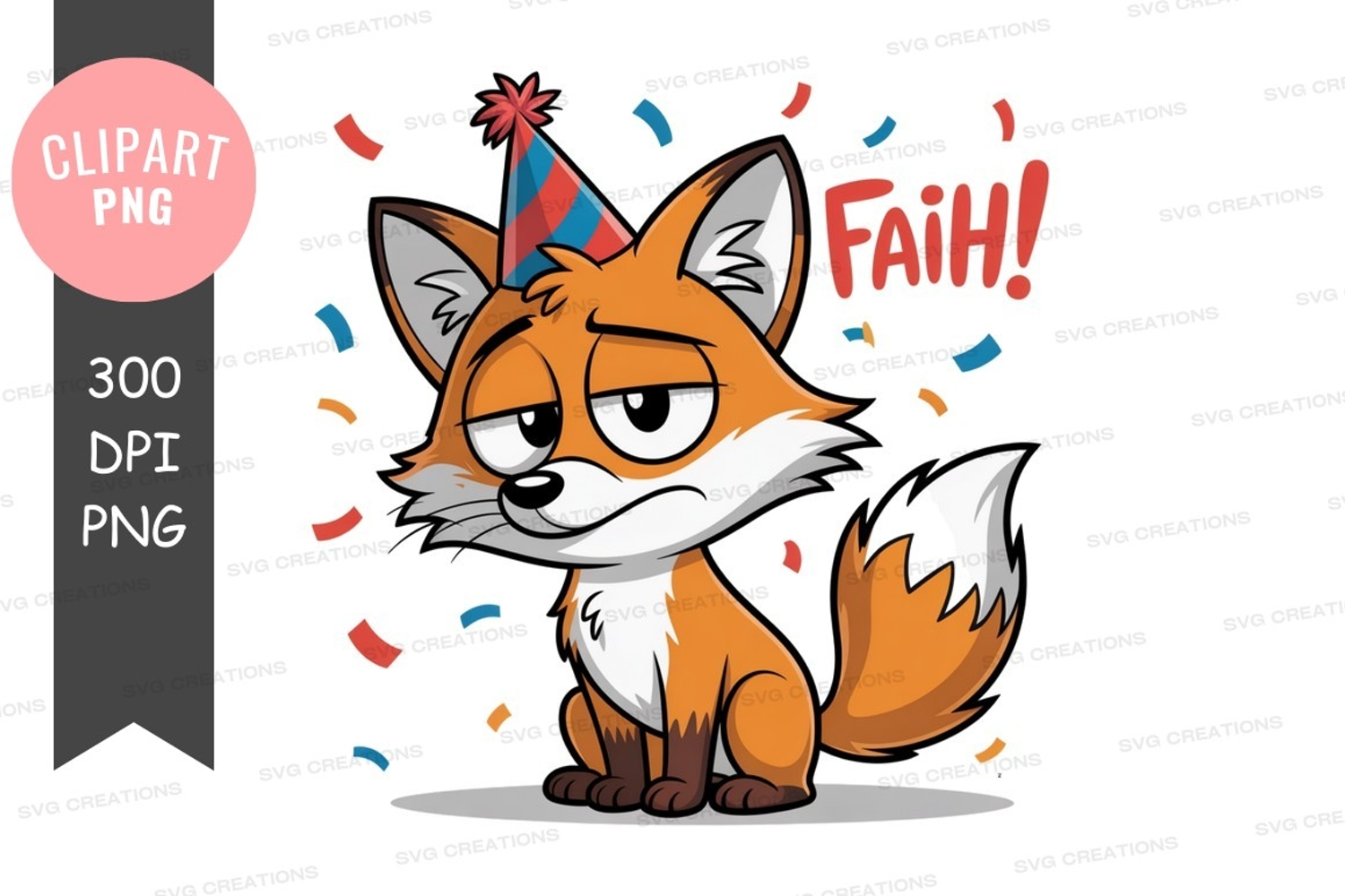 Cartoon Animal Party Celebration Confetti Butterfly Fox Hat Sad Blue Butterfly