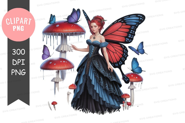 Fantasy Whimsical Nature Fairy Magic Butterfly Mushroom Gown Blue Butterfly Enchanted