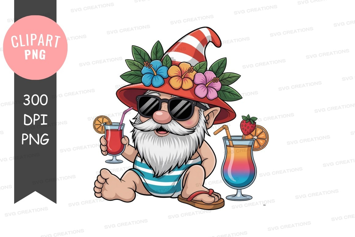 Tropical santa claus clipart png example image 1
