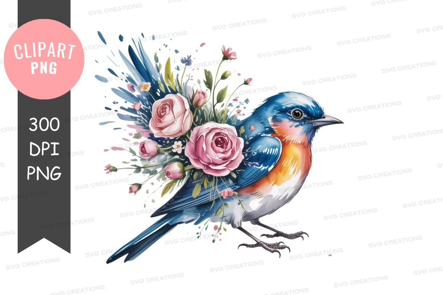 Similar Design Products to Blue bird with floral bouquet clipart png