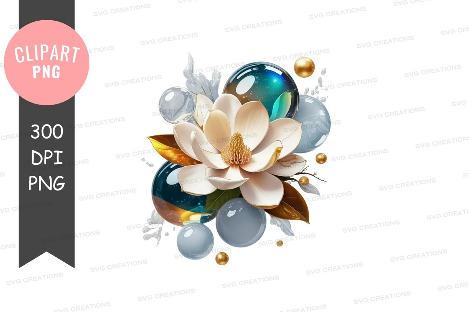 Similar Design Products to Elegant floral with bubbles clipart png