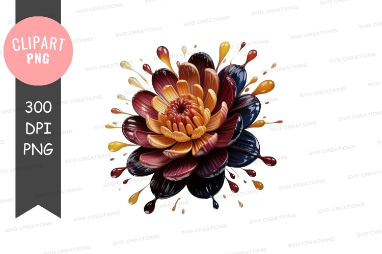 Vibrant flower with paint splatter clipart png example image 1