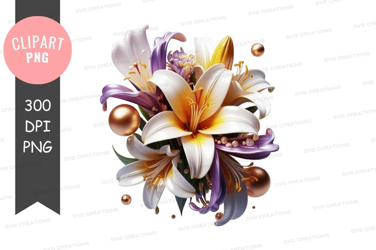 Ornaments Gold Aesthetic Nature Flowers Decoration Bouquet Lilies Pearls