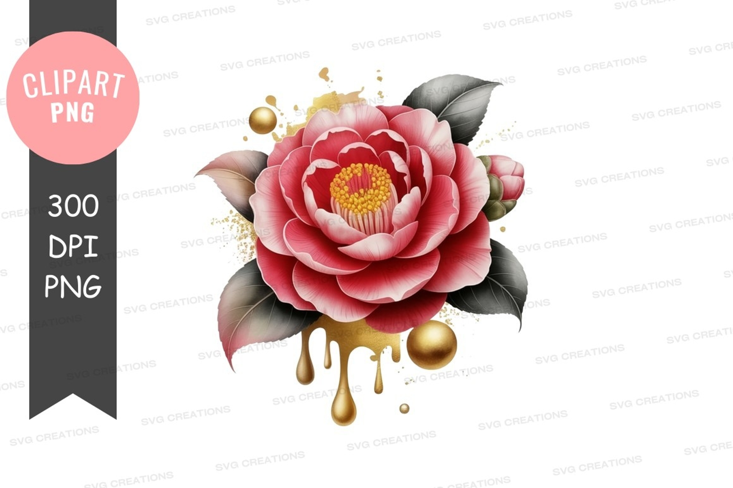 Similar Design Products to Elegant pink camellia flower with gold accents