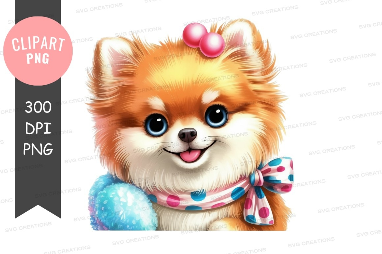 Cartoon Funny Cute Clothing Puppy Dog Pink Bow Pomeranian Blue Eyes