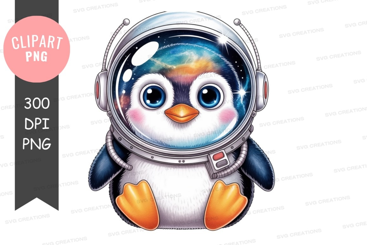 Adorable penguin in astronaut suit clipart png example image 1