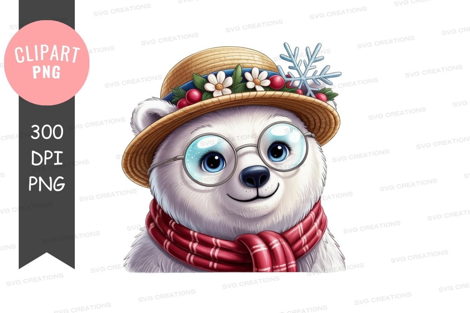 Adorable polar bear with festive hat and scarf example image 1