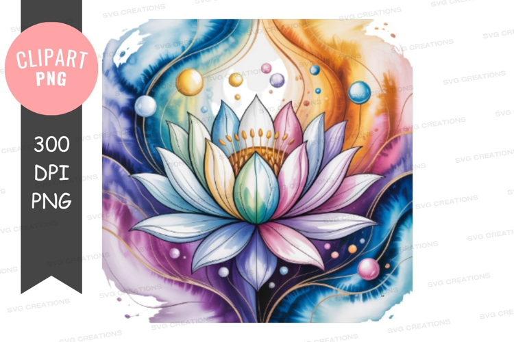 Illustration Swirls Colorful Flower Golden Bubbles Lotus Petals Magical Gnome