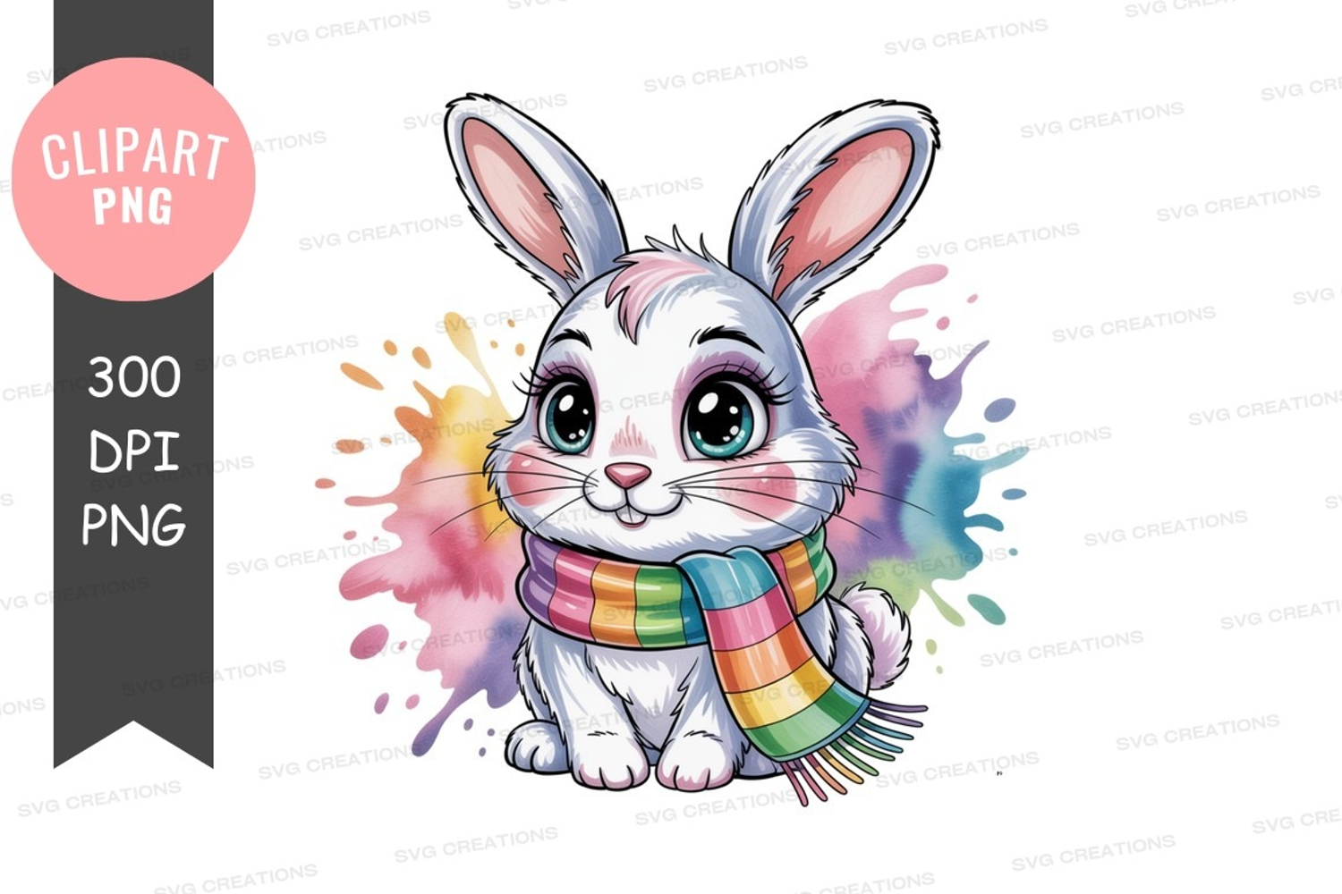 Cute bunny with rainbow scarf