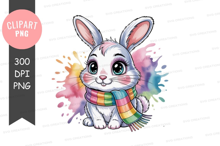 Cute bunny with rainbow scarf example image 1