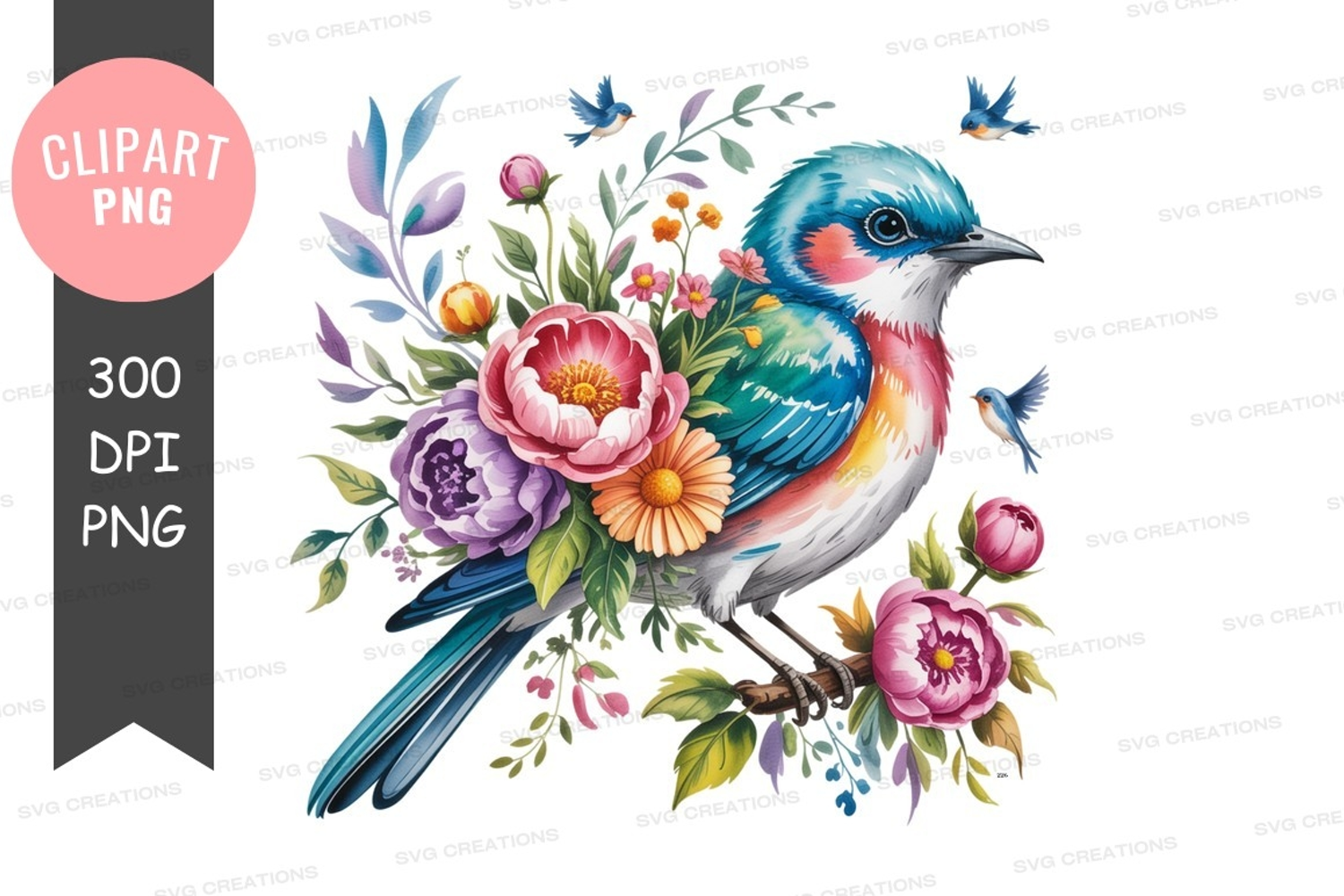 Similar Design Products to Colorful bird with floral surroundings clipart png