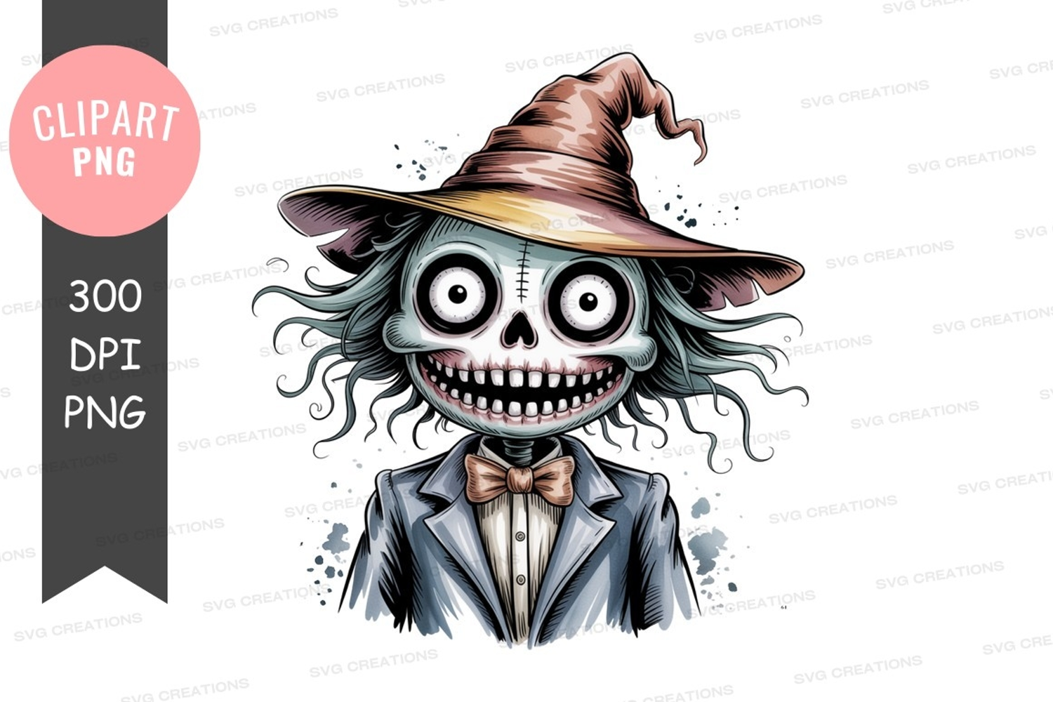 Illustration Cartoon Halloween Clipart Witch Butterfly Skeleton Puppy Bow Tie Pointed Hat
