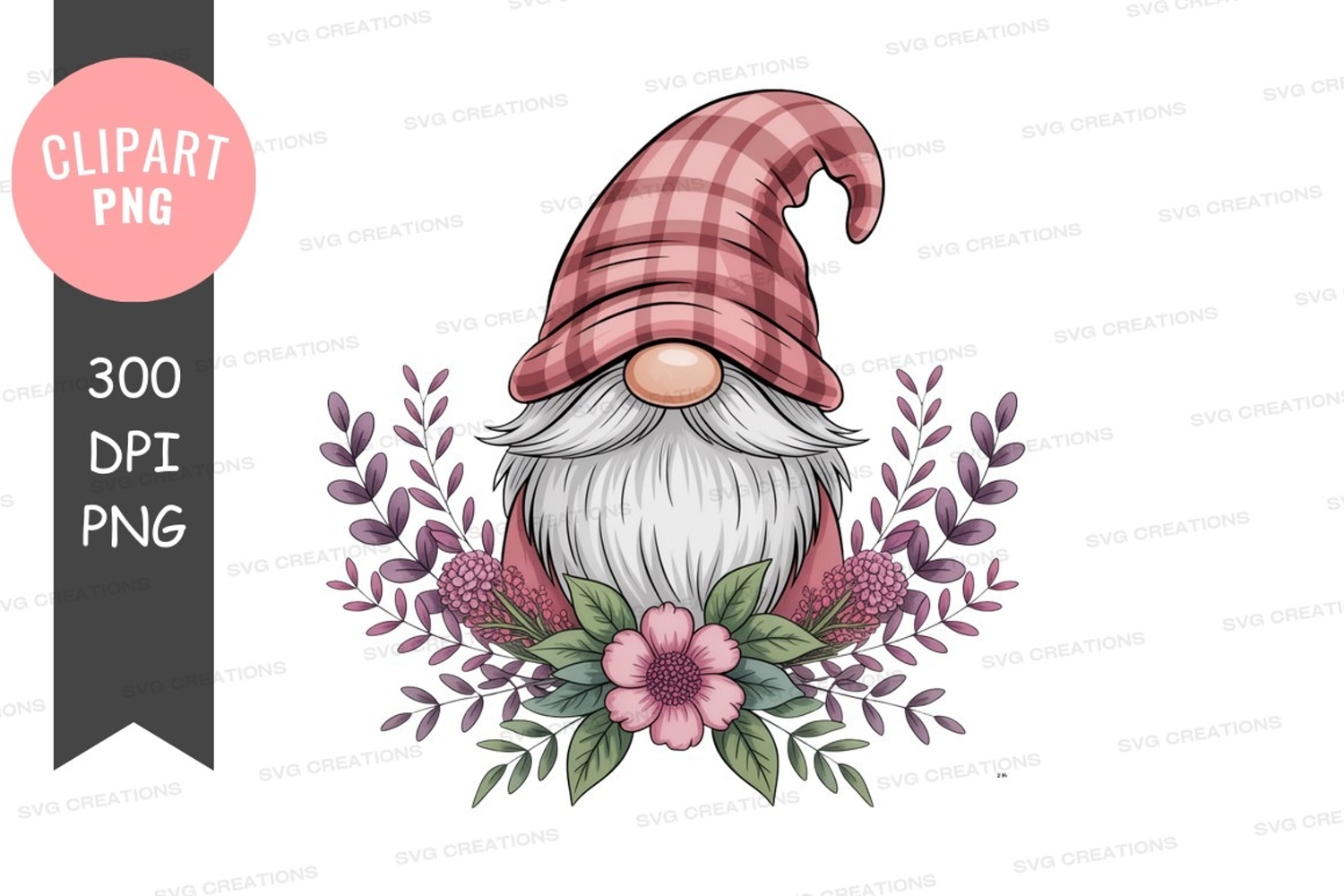 Whimsical gnome with floral crown clipart png example image 1