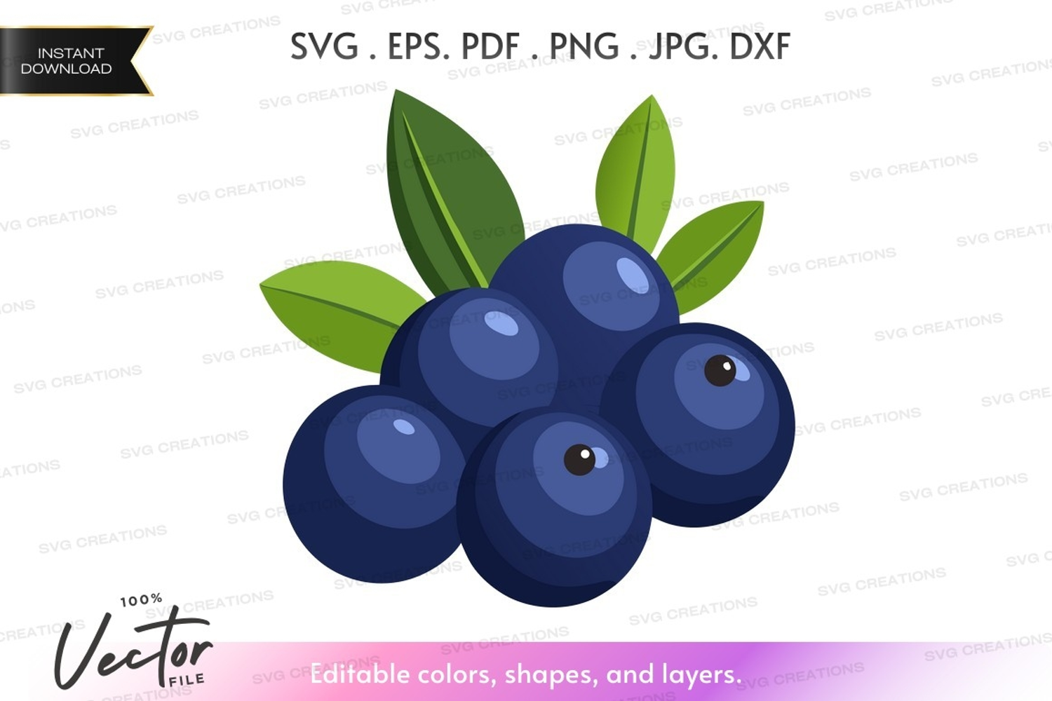 Illustration Fruit Vector Clipart Leaves Berries Blueberries