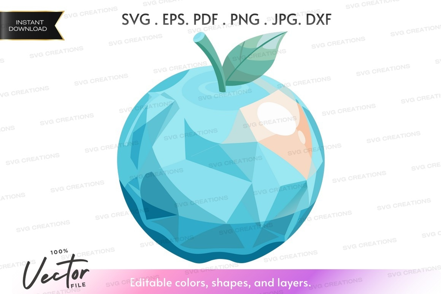 Fruit Vector Geometric Green Leaf Clipart Blue Apple Bite Low-poly