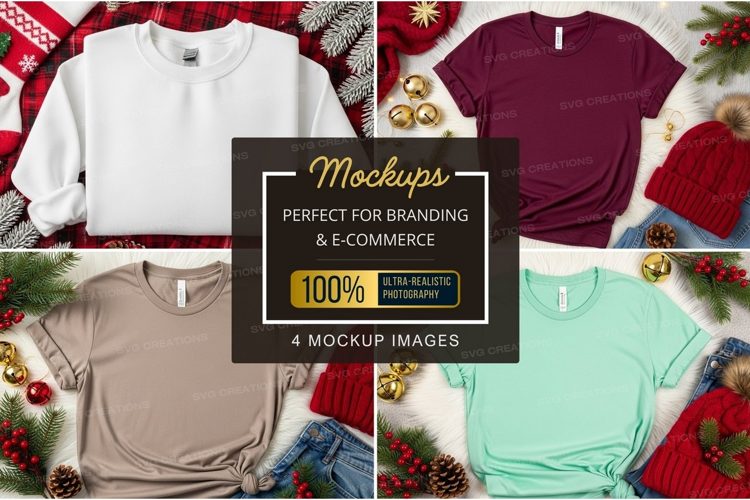 Ornaments Holiday T-shirt Christmas Mockup Beige White Light Blue Plaid Maroon