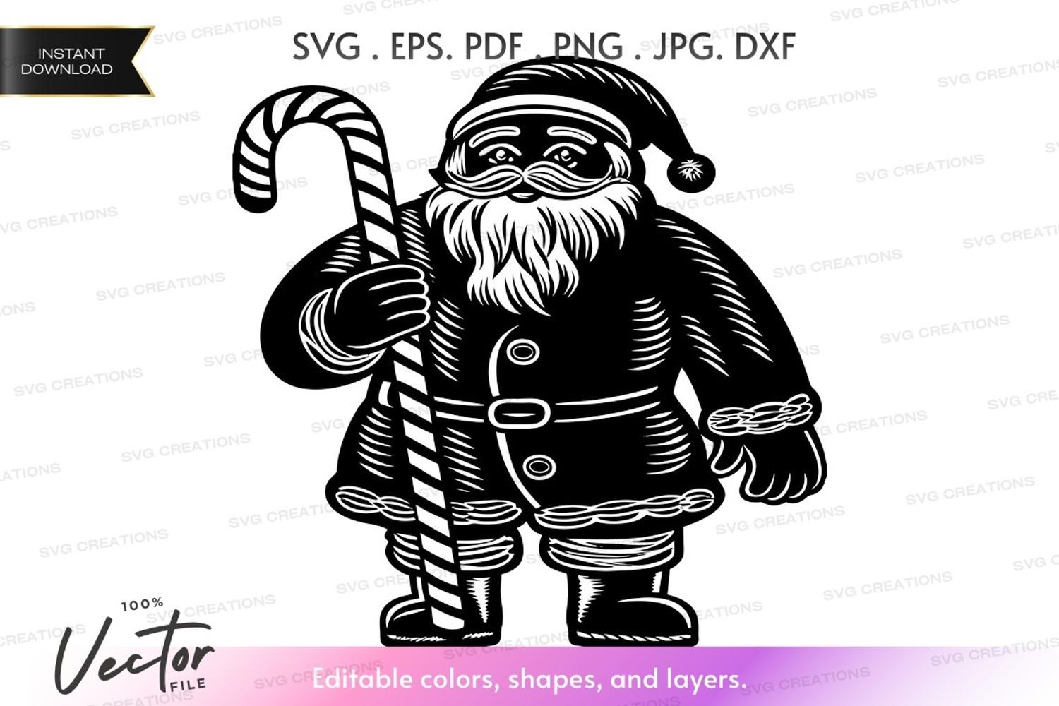 Illustration Holiday Christmas Black And White Santa Claus Candy Cane Stag Night T-shirt Mockup