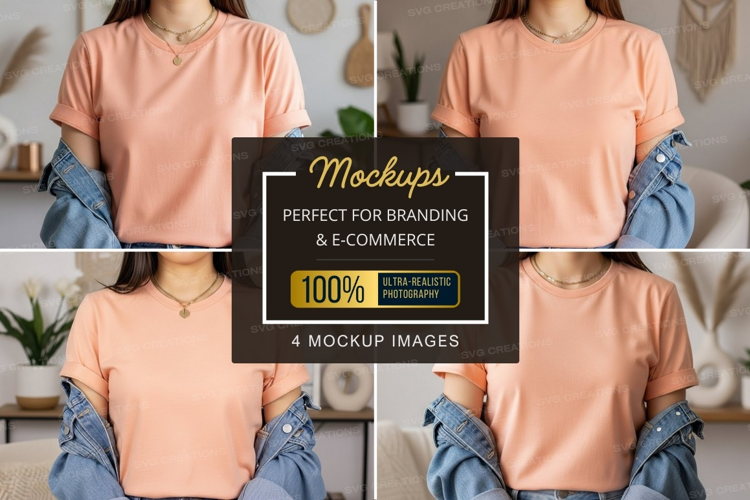 Fashion T-shirt Mockup Peach Women's Clothing Denim Jeans Casual Wear Casual Style Home Decor Background Comfortable Outfit