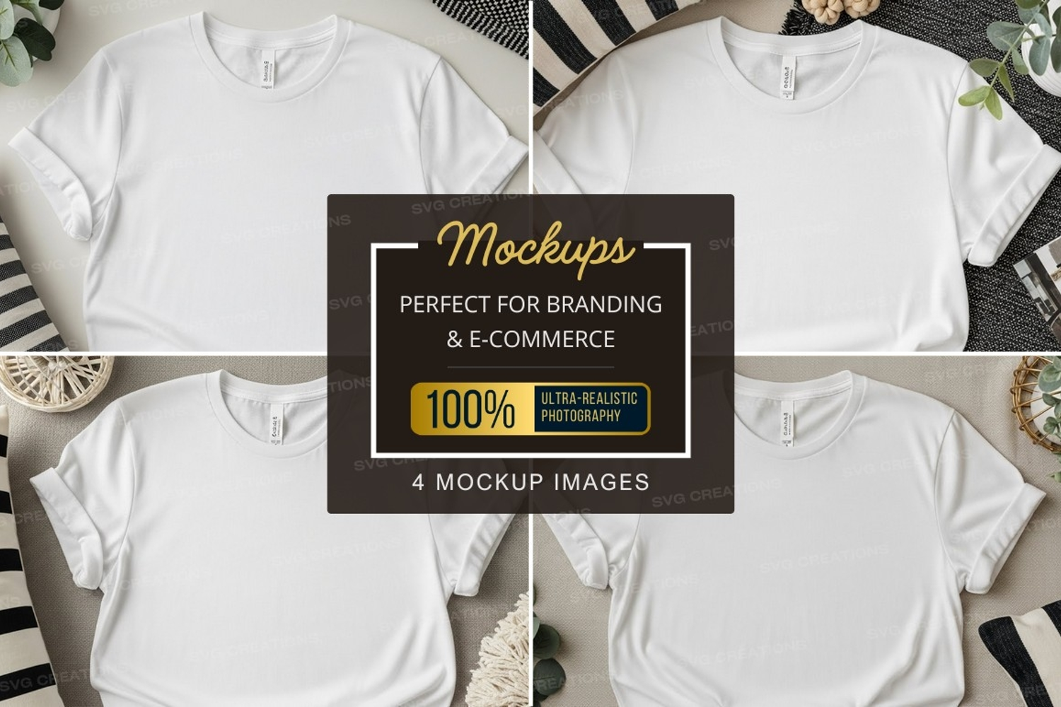 Display Decorative T-shirt Mockup White Flat Lay Blank T-shirt