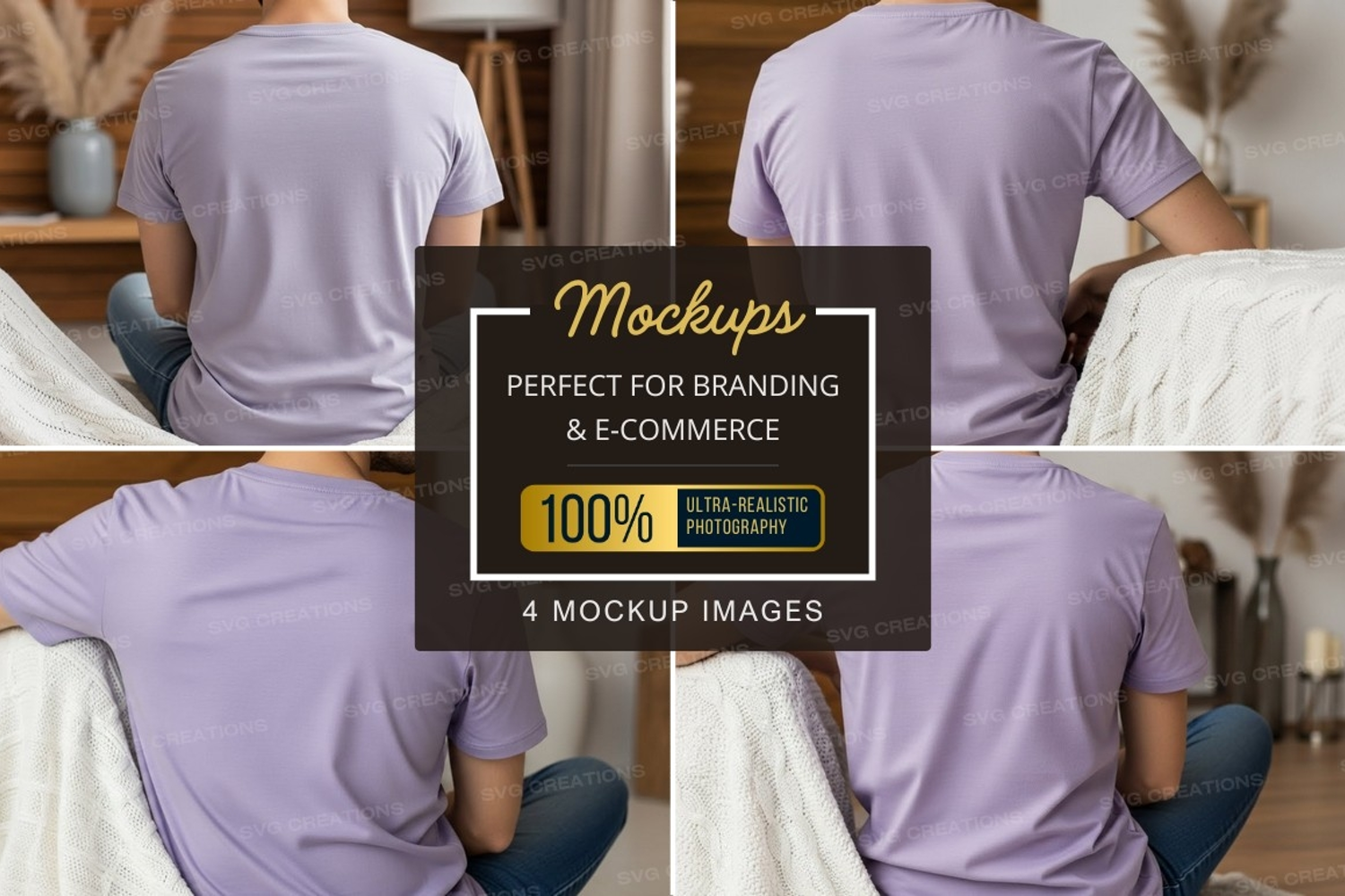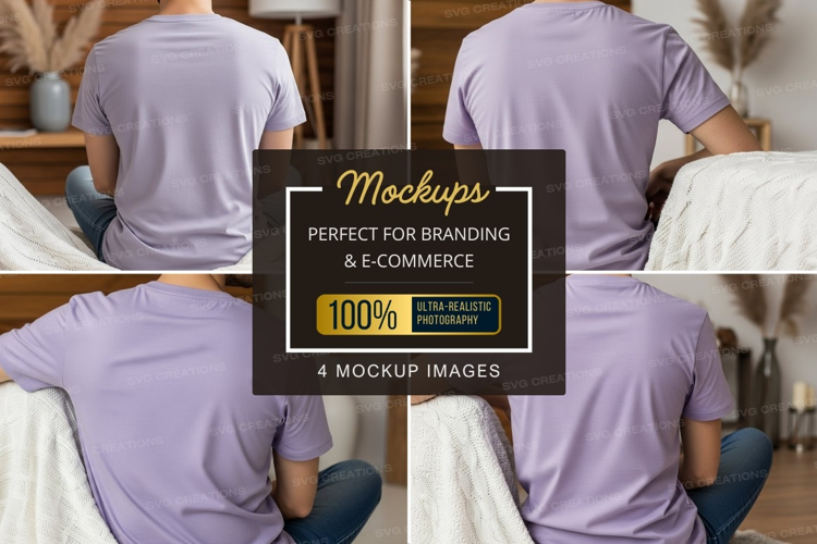 Fashion T-shirt Clothing Mockup Wooden Purple Indoor Modeling Casual Wear White Furniture