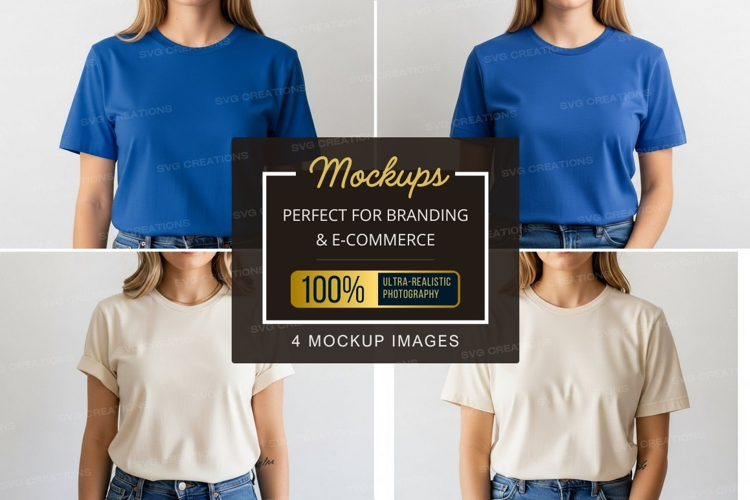 T-shirt Clothing Mockup Apparel Model Blue White Front View Back View