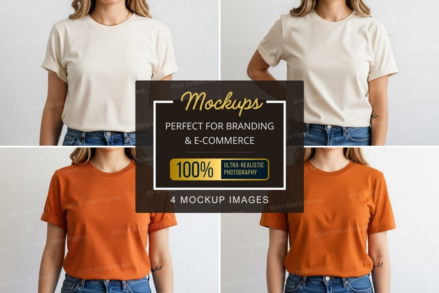 T-shirt Mockup Model Jeans Front View Back View White T-shirt Orange T-shirt