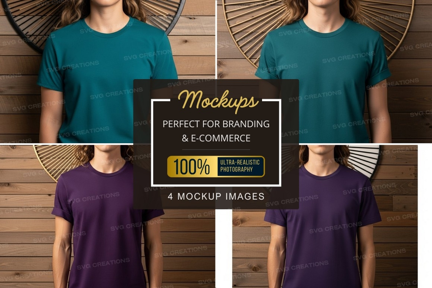 T-shirt Clothing Mockup Purple Teal Wooden Background Models