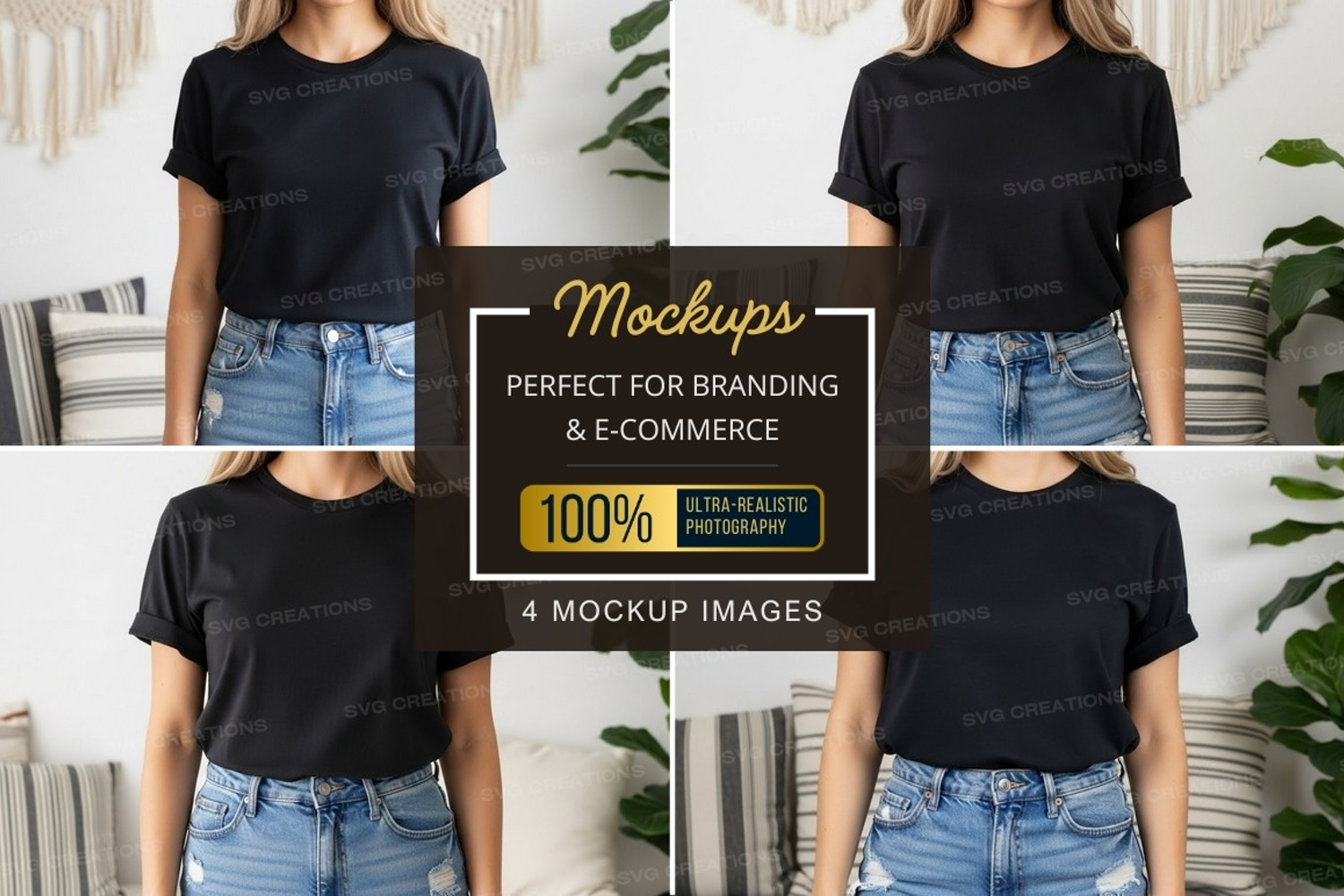 T-shirt Mockup Jeans Plants Macrame Denim Shorts Bohemian Decor Black T-shirt