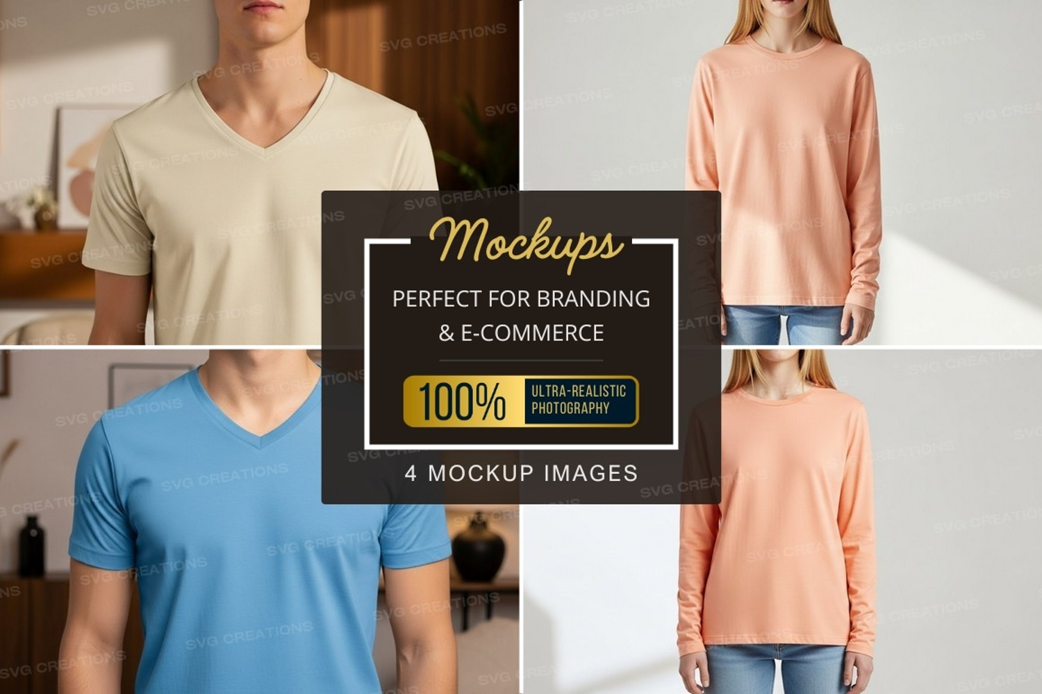 T-shirt Mockup Women's T-shirt White T-shirt Long-sleeve Blue T-shirt V-neck Men's T-shirt Short-sleeve Peach T-shirt