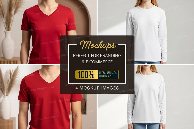 Fashion Design T-shirt Clothing Mockup Apparel White Red Long-sleeve V-neck