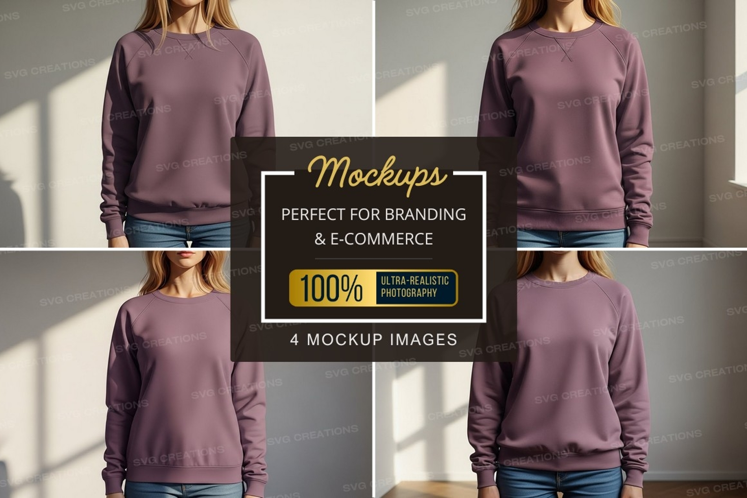 Fashion Clothing Mockup Model Purple Indoor Sweatshirt