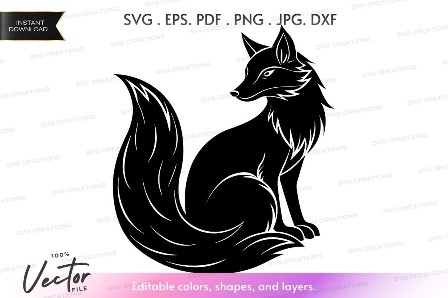 Animal Vector Svg Eps Silhouette Sitting Fox Seasonal Tail Curled