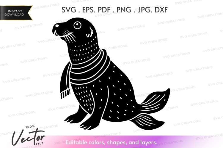 Illustration Animal Svg Winter Scarf Seal Seasonal Festive Sleigh Vector Silhouette