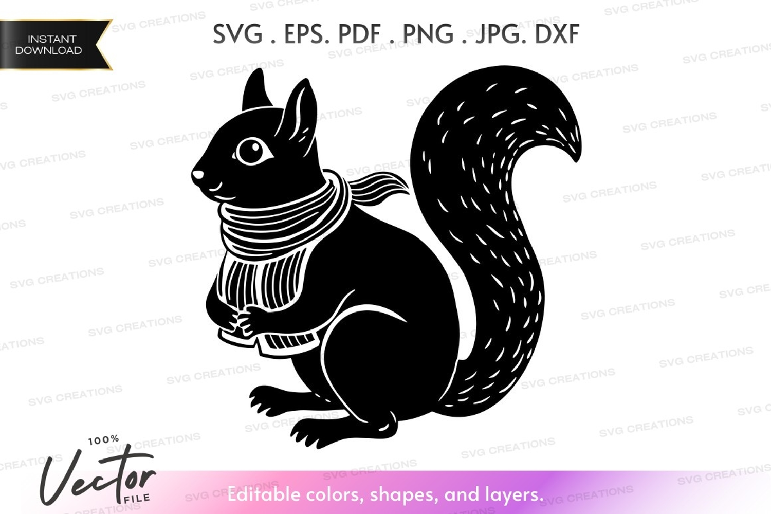 Cute squirrel with scarf vector silhouette example image 1