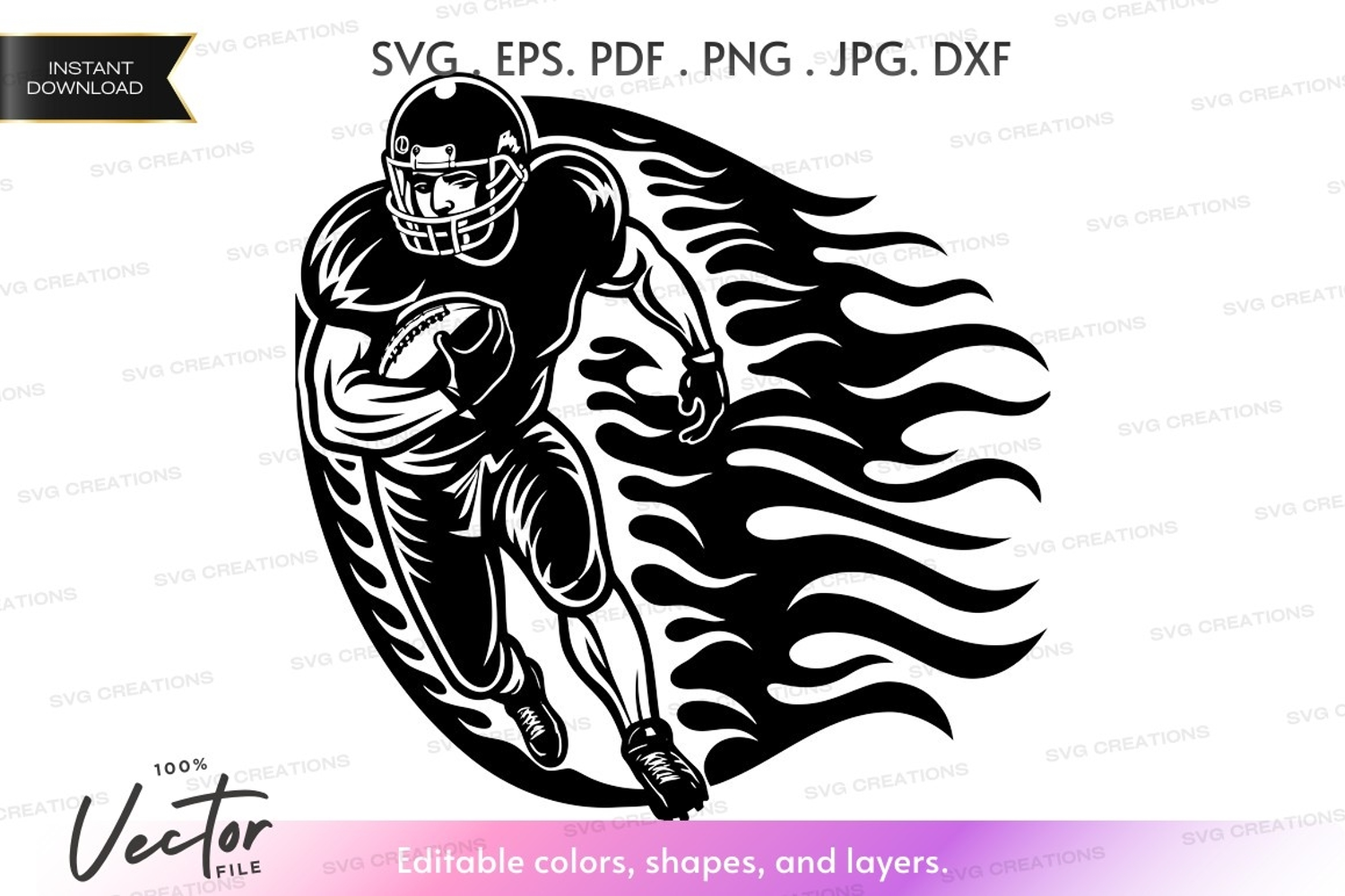 Block Vector Football Sports Silhouette Player Digital Art Running Catch Circular Frame