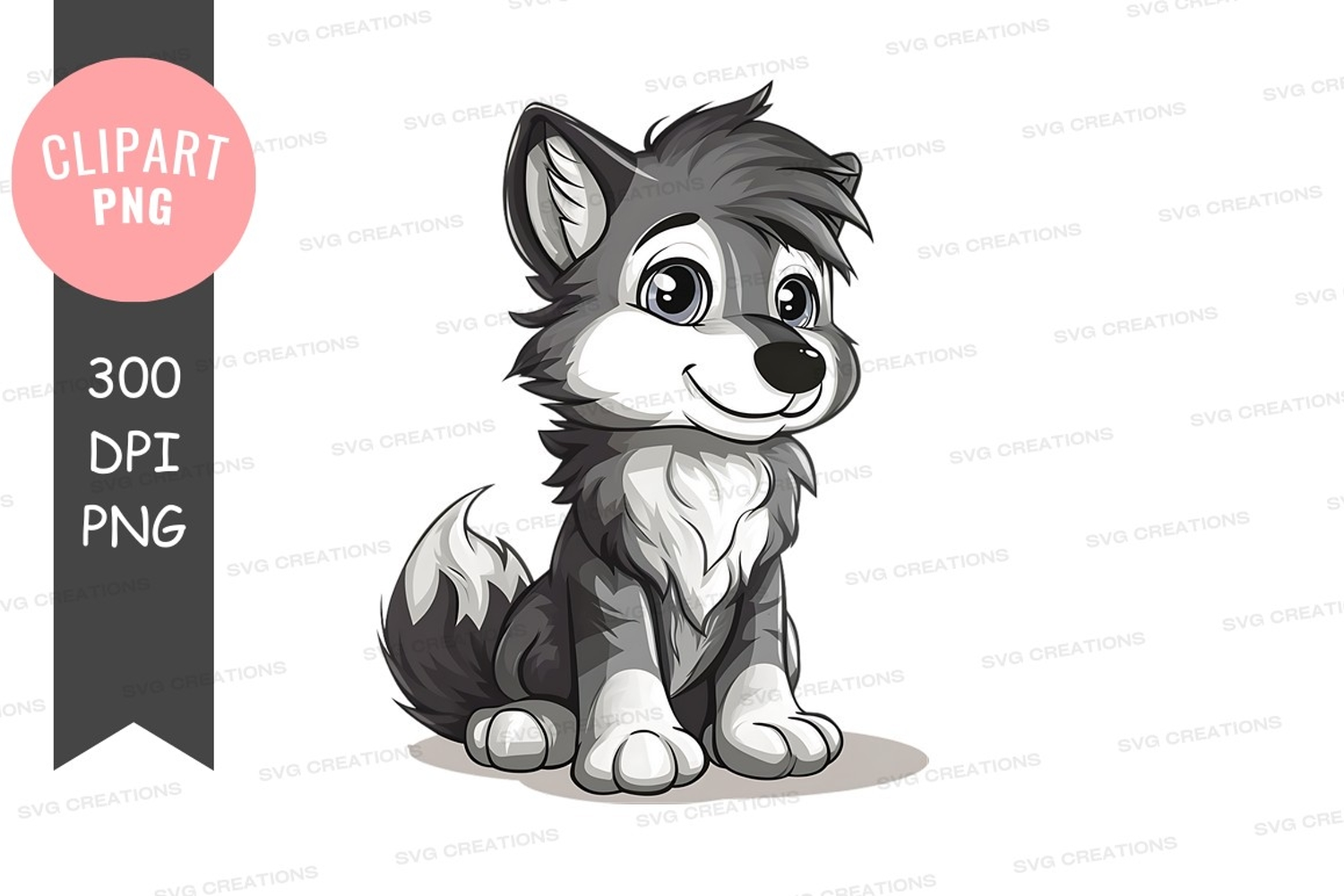 Cartoon Animal Friendly Flowers Garden Black And White Clipart Wolf Butterfly Puppy