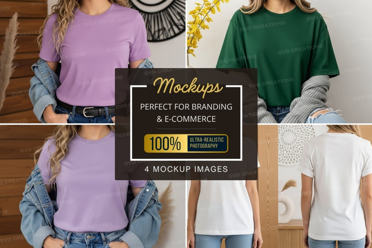 Fashion T-shirt Clothing Green Mockup Model Purple White Denim Home Decor