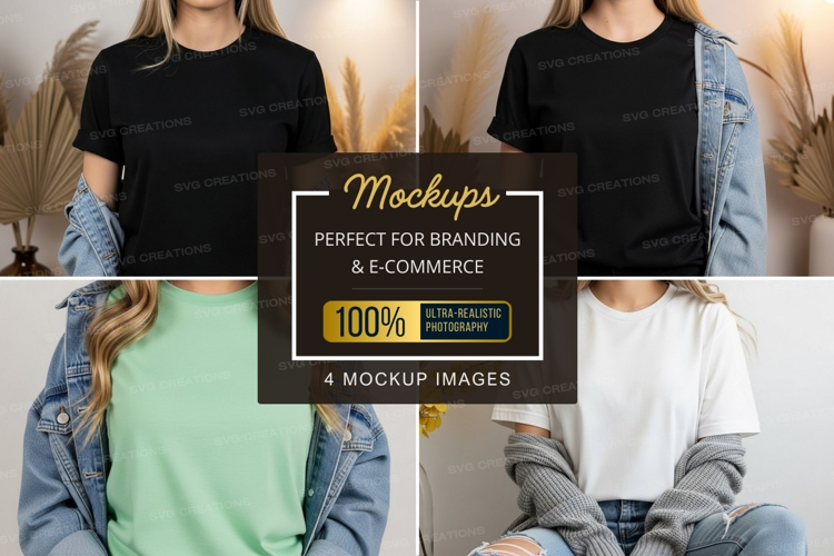 Fashion T-shirt Clothing Mockup Model Sweater White T-shirt Black T-shirt Denim Jacket Green T-shirt
