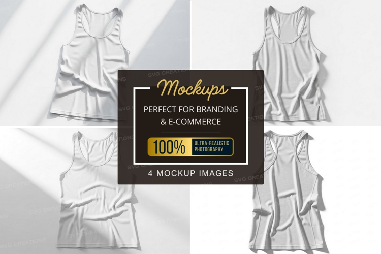 Design Mockup Fabric Front View White Background Side View Shadows Back View Tank Top