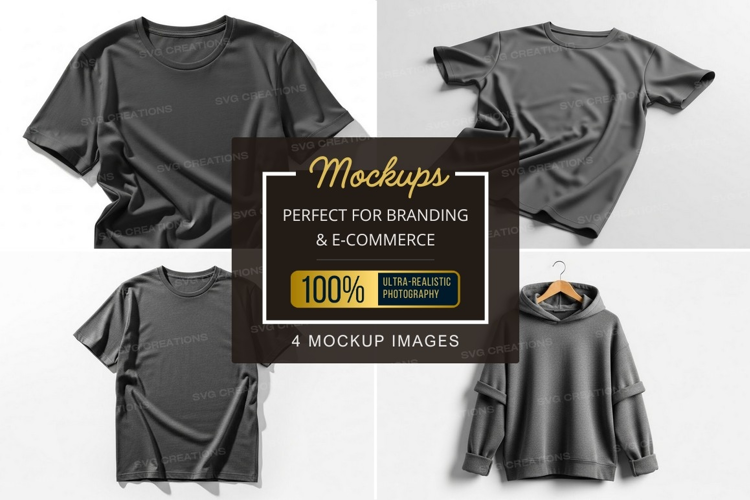 T-shirt Clothing Mockup Folded White Background Gray Flat Lay Hanging