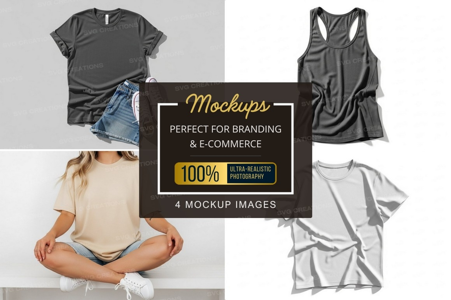 Fashion Design T-shirt Clothing Mockup Apparel White T-shirt Black T-shirt Gray Tank Top Beige T-shirt