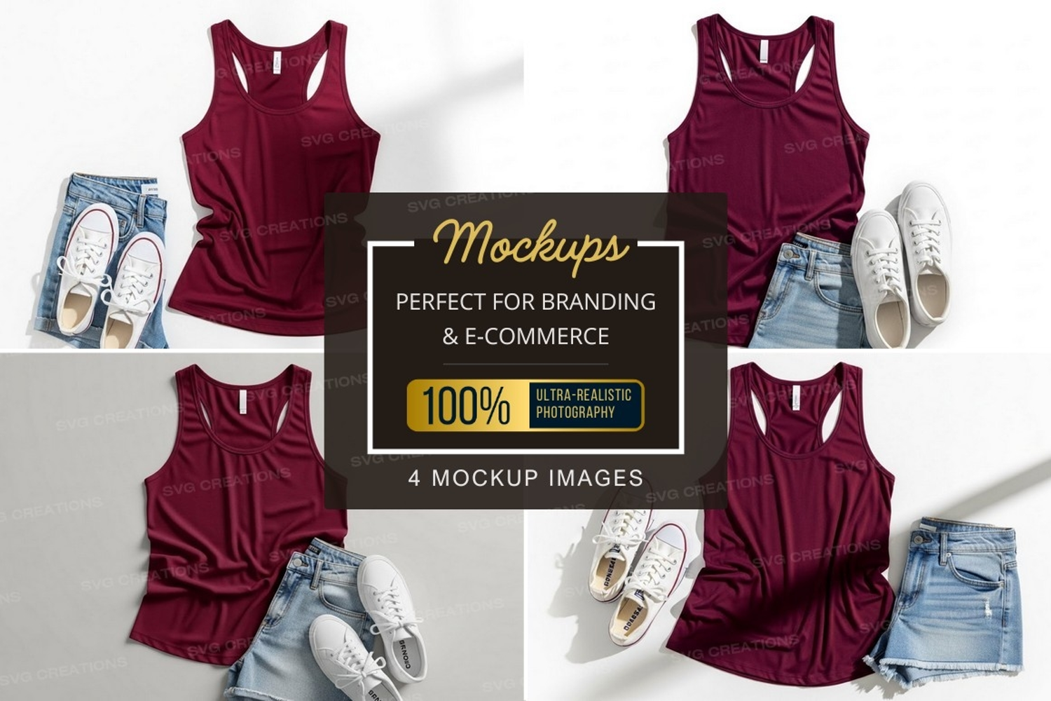 Similar Design Products to Casual summer outfit with burgundy t-shirt mockup