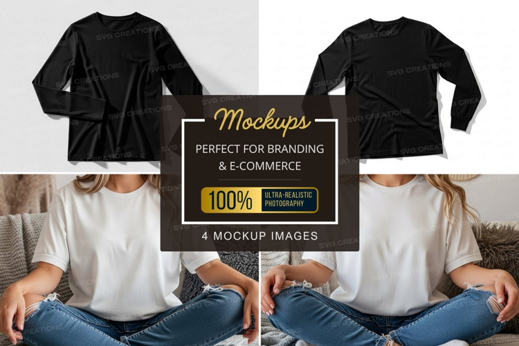 Fashion T-shirt Mockup Apparel Model Flat Lay Couch White T-shirt Black T-shirt Casual Wear