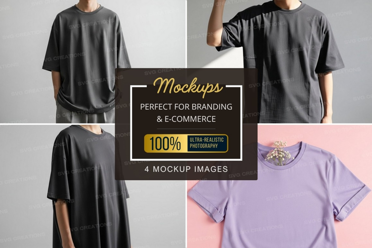 Fashion T-shirt Clothing Mockup Apparel Black T-shirt Purple T-shirt