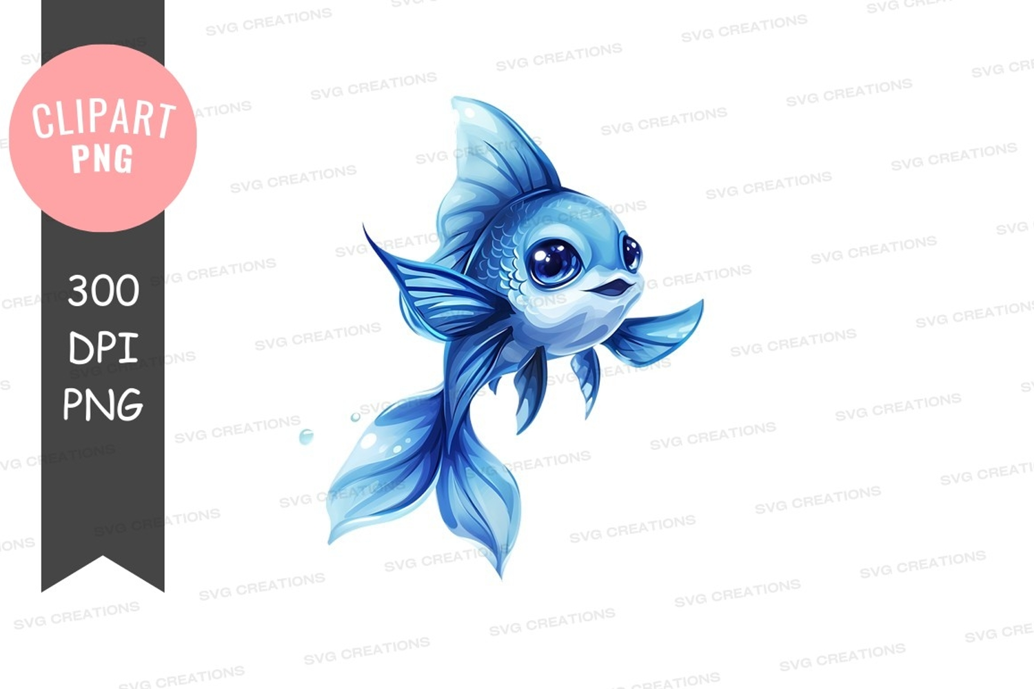 Playful blue fish clipart png example image 1
