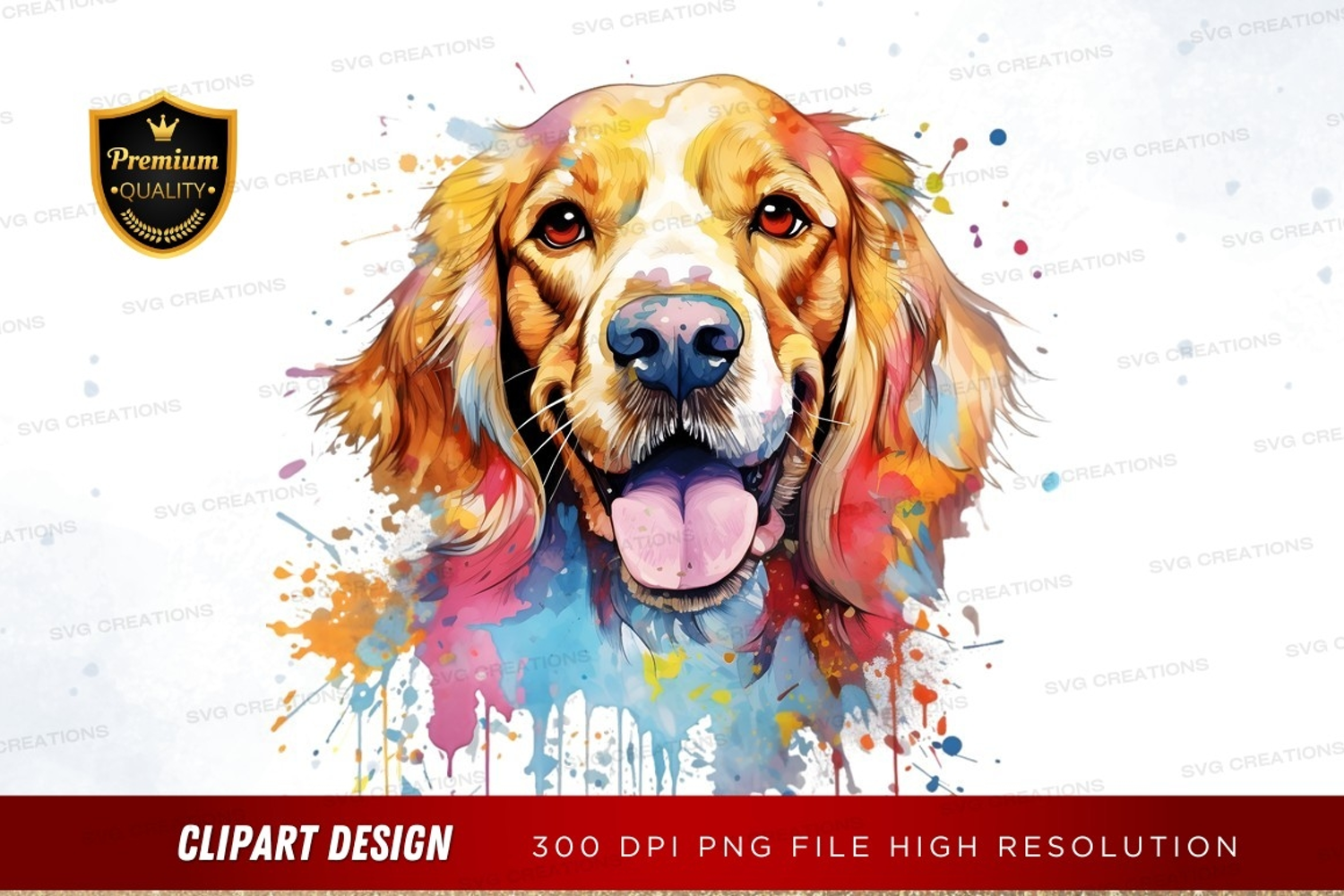 Illustration Animal Happy Colorful Garden Clipart Butterfly Dog Tongue Out Paint Splashes
